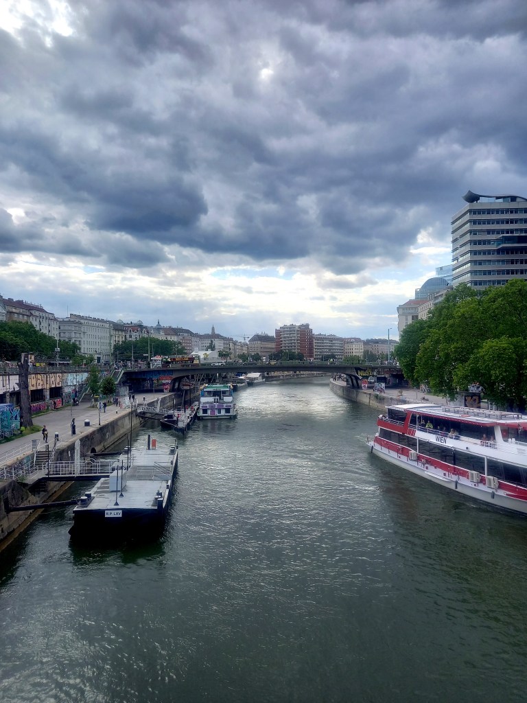 WIEN – Schwedenplatz Panorama – Mehr Abendschiffe, Romantische dinner Fahrten durch die Stadt! Plus neues traditionelles fisch Restaurant am Kai. Graffiti muss komplett verschwinden. Abwaschbar Farbe! Brückenenden jeweils 2 öterrechische fahnen an Masten insgesamt 4! Damit wird die Heimat verinnerlicht!