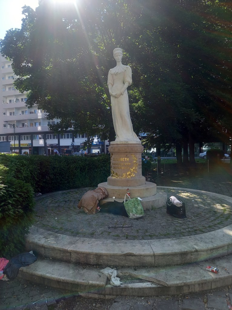 ● Das Kaiserin Elisabeth Denkmal könnte ein runder Brunnen werden , statt der hässlichen braunen Skulptur beim Landestheater. Des weiteren könnte hier ein kleiner erfrischungs Pool mit Grünfläche etabliert werden. Mit Holz liegestühlen.